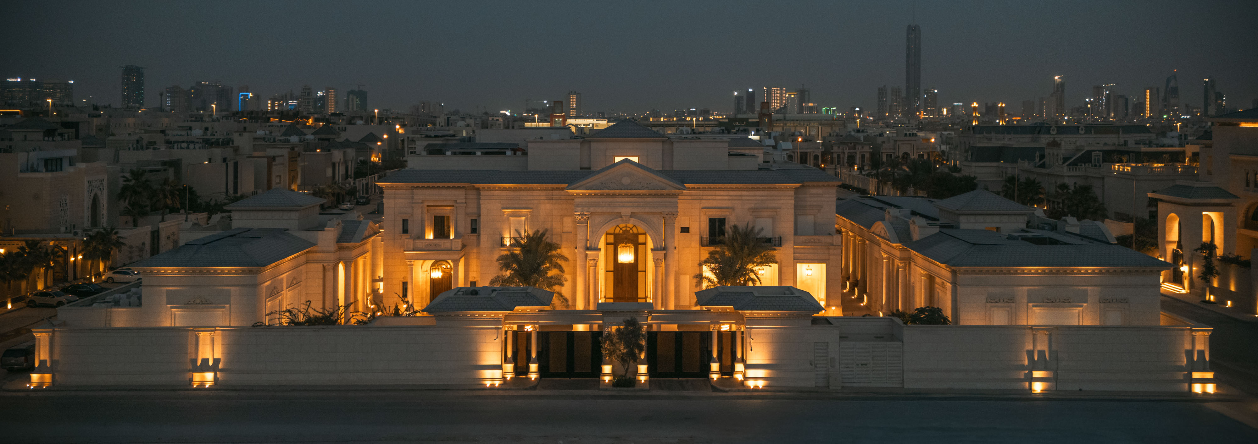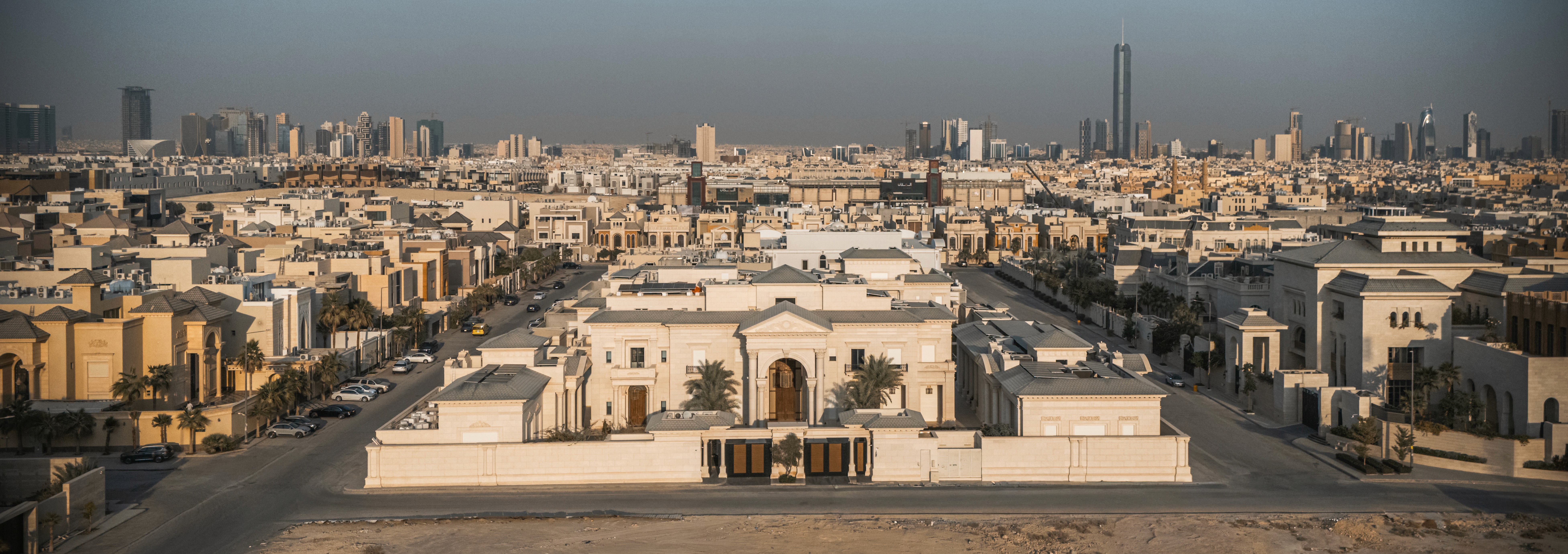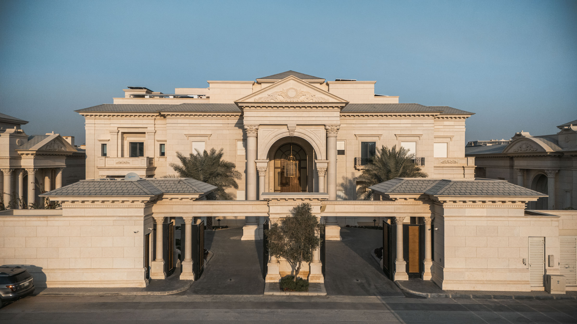 AAT Villa is a private residence in Riyadh composed as a series of clearly defined volumes organised through a deliberate architectural hierarchy. The main house anchors the composition, flanked on either side by dedicated male and female guest houses, providing privacy and functional clarity while maintaining a cohesive overall form.