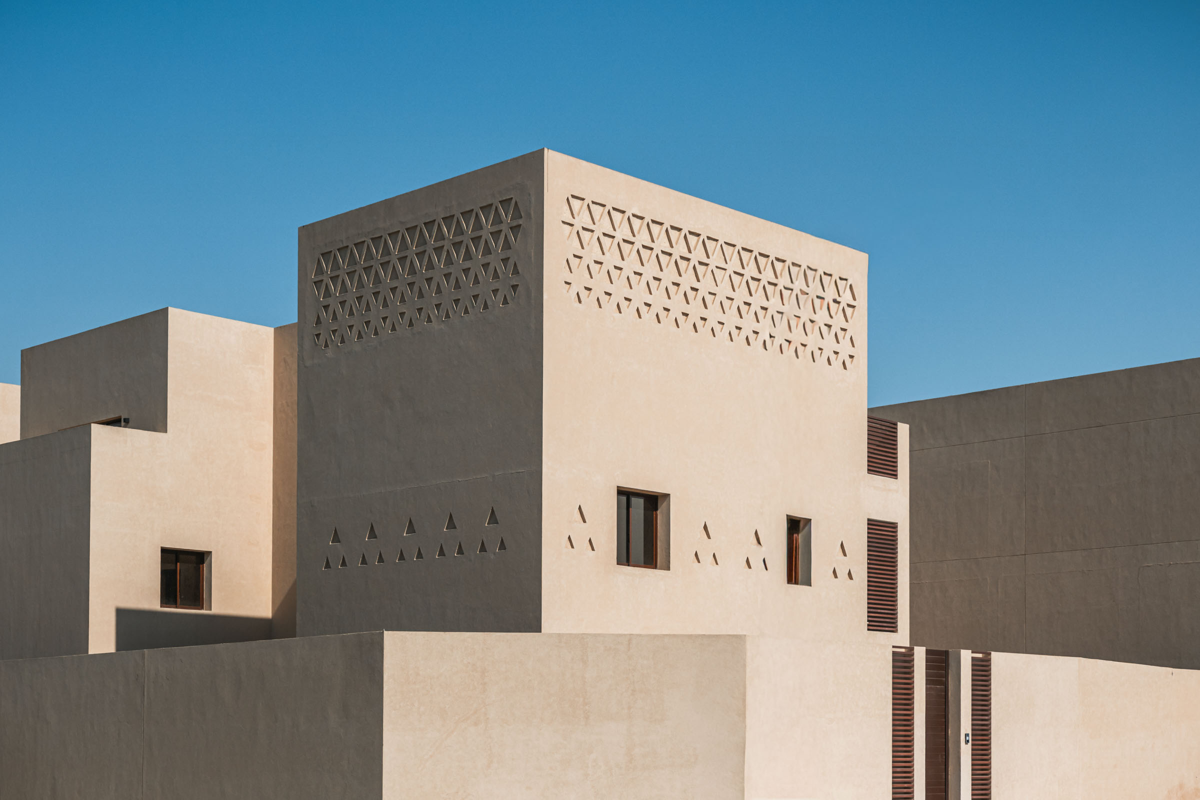 Rabwa is a residential development of 16 units in Riyadh that reinterprets traditional Najdi architecture through a contemporary lens. The project is composed of minimal, cubic volumes arranged to create a cohesive and legible urban fabric, where simplicity of form becomes the backdrop for cultural expression.