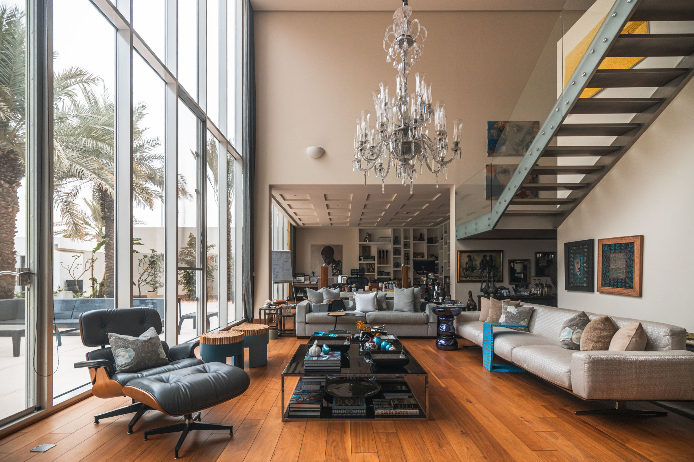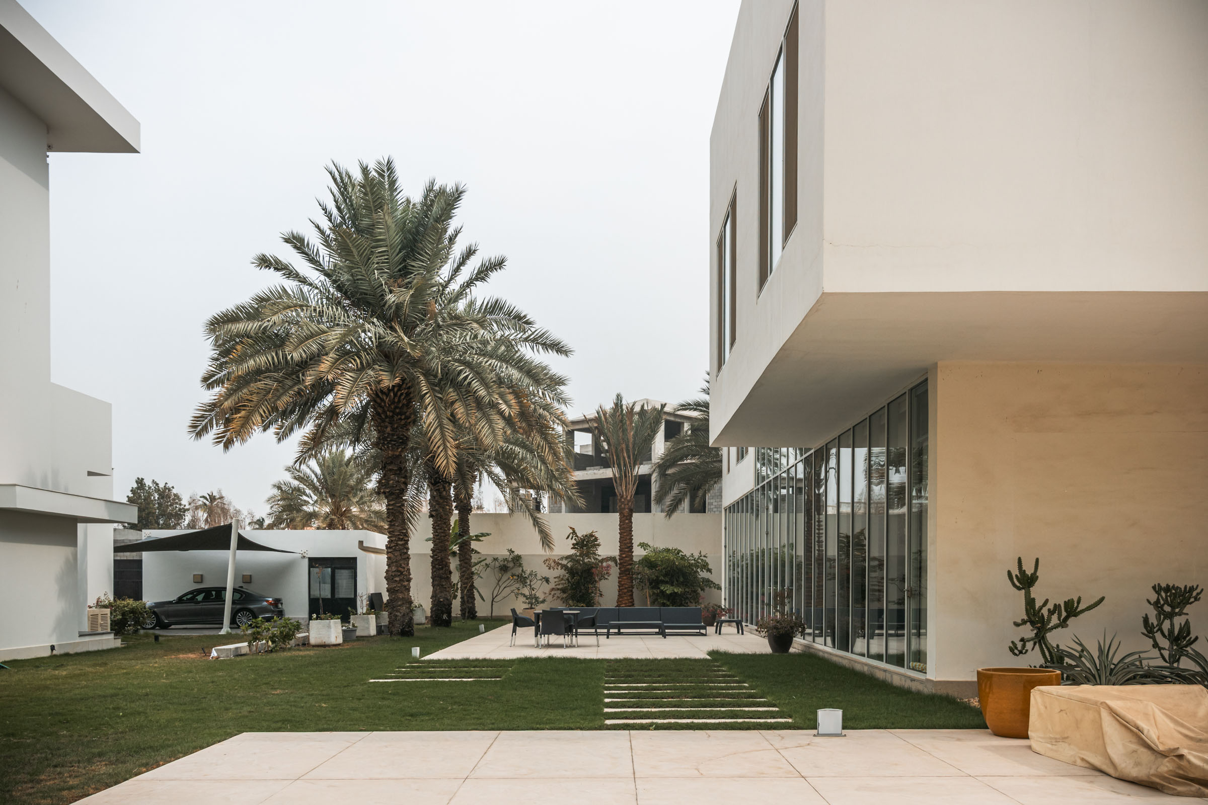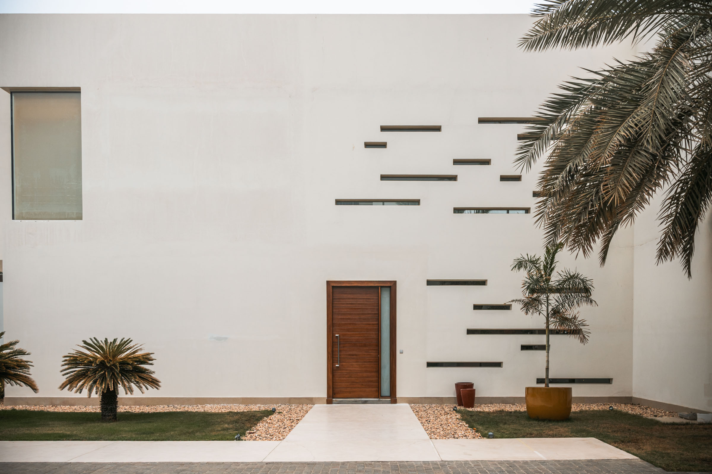 LS Villa is a private residence in Jeddah composed of three primary volumes: the main house, a guest house, and a children’s house. The exterior presents a minimalistic composition of cubic forms, with plastered walls and generous ground-floor glazing, establishing a clean, restrained architectural language. This simplicity forms a backdrop to the interiors, where contemporary design introduces warmth, colour, and texture, immediately creating a layered and engaging spatial experience.