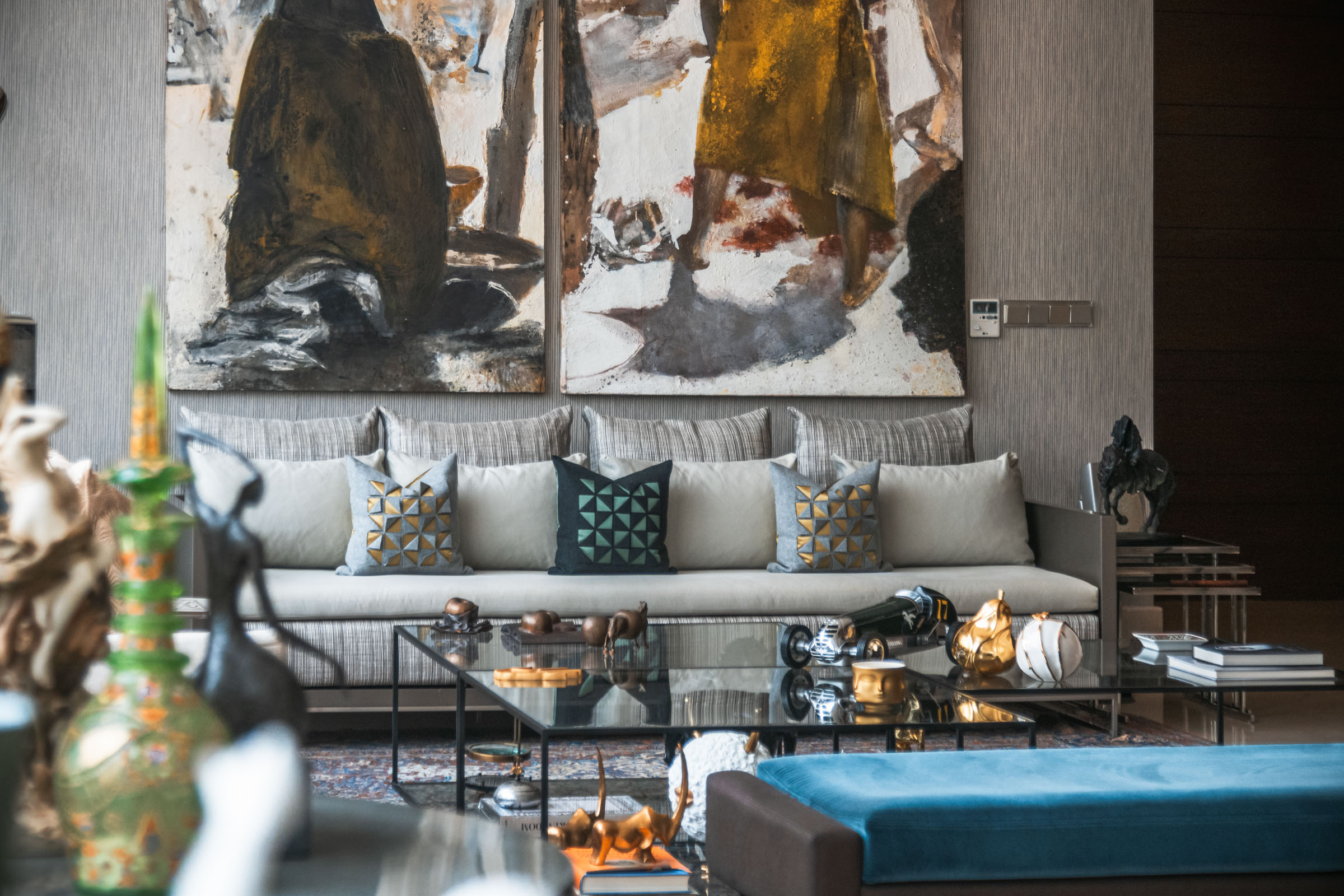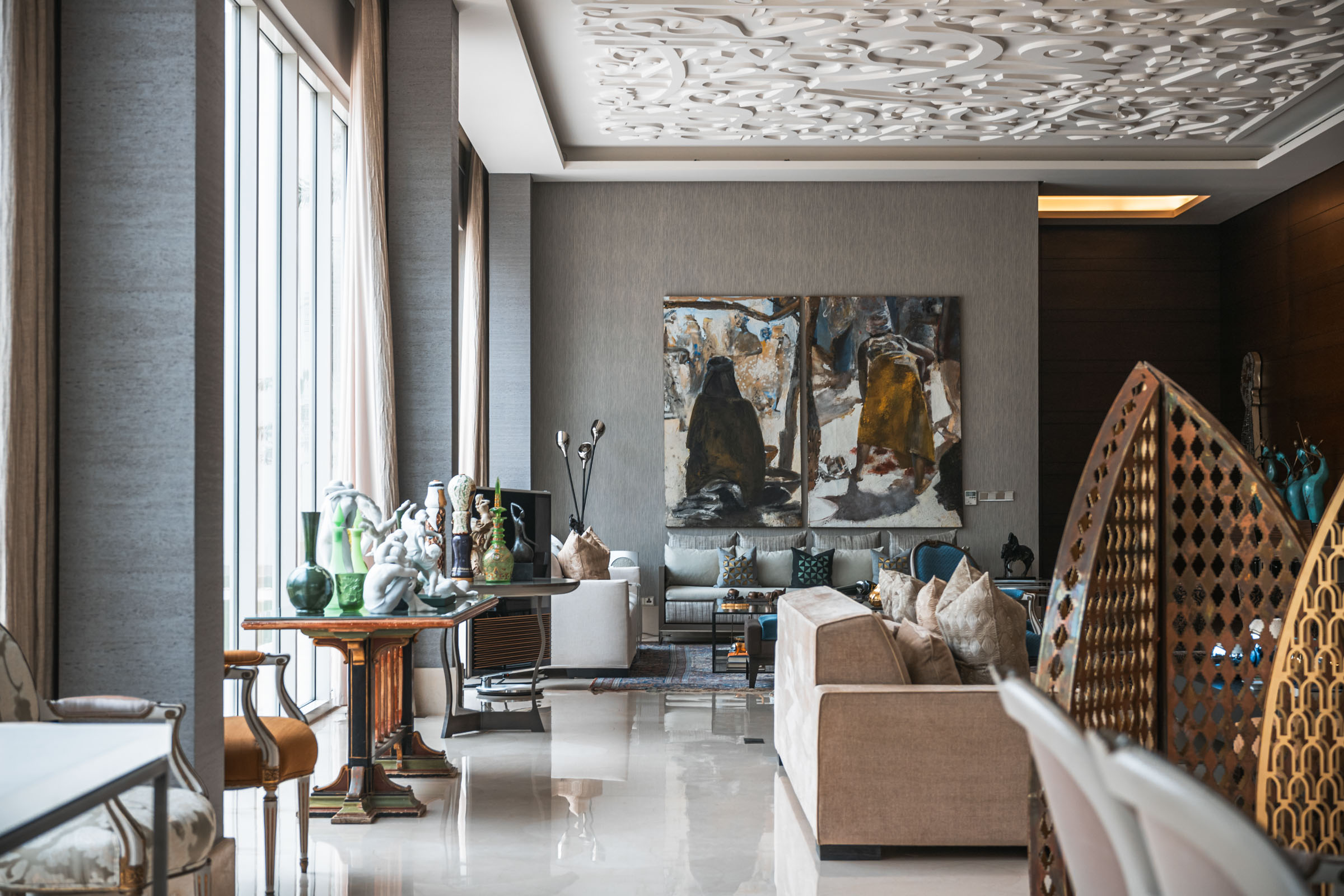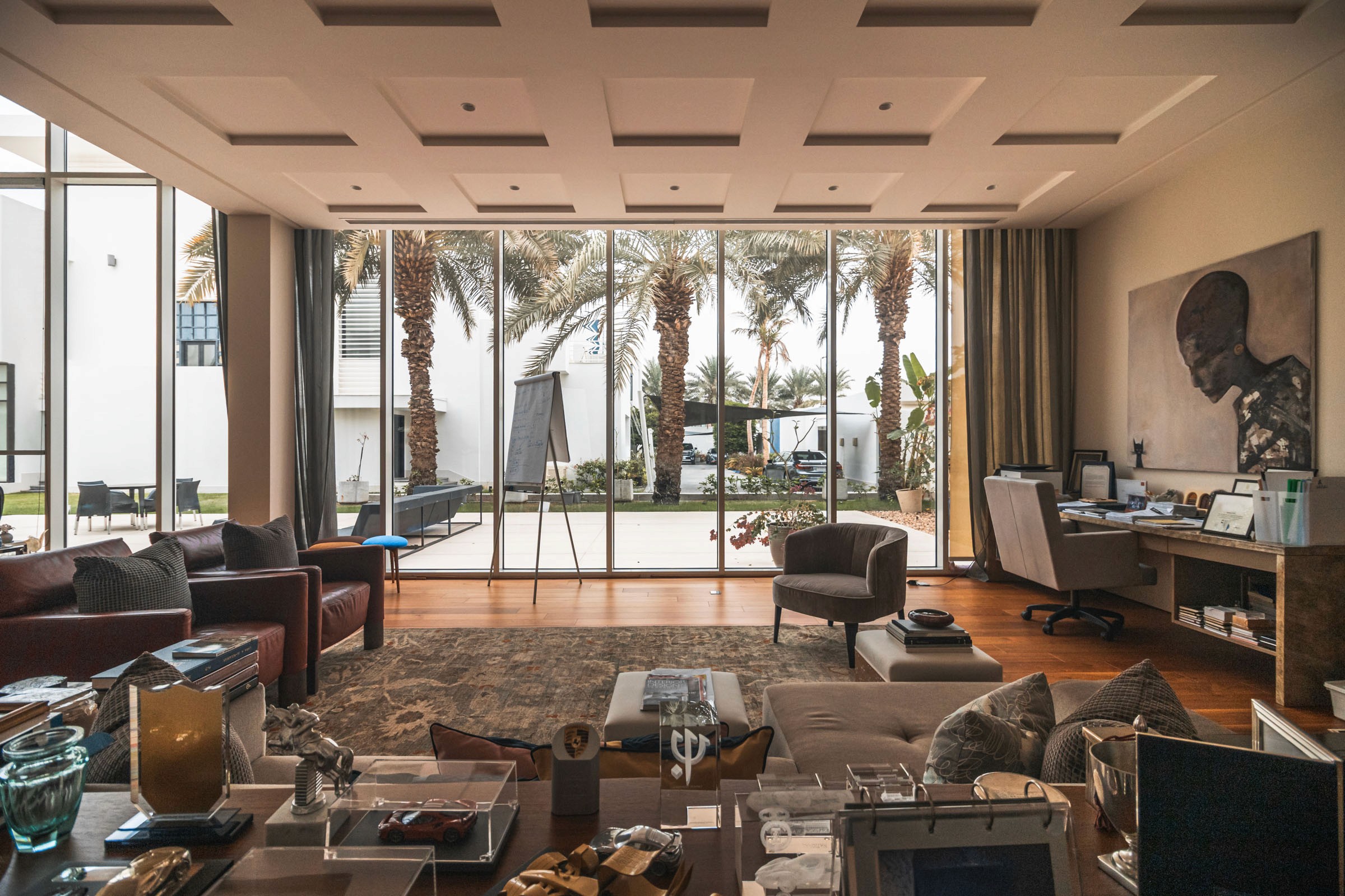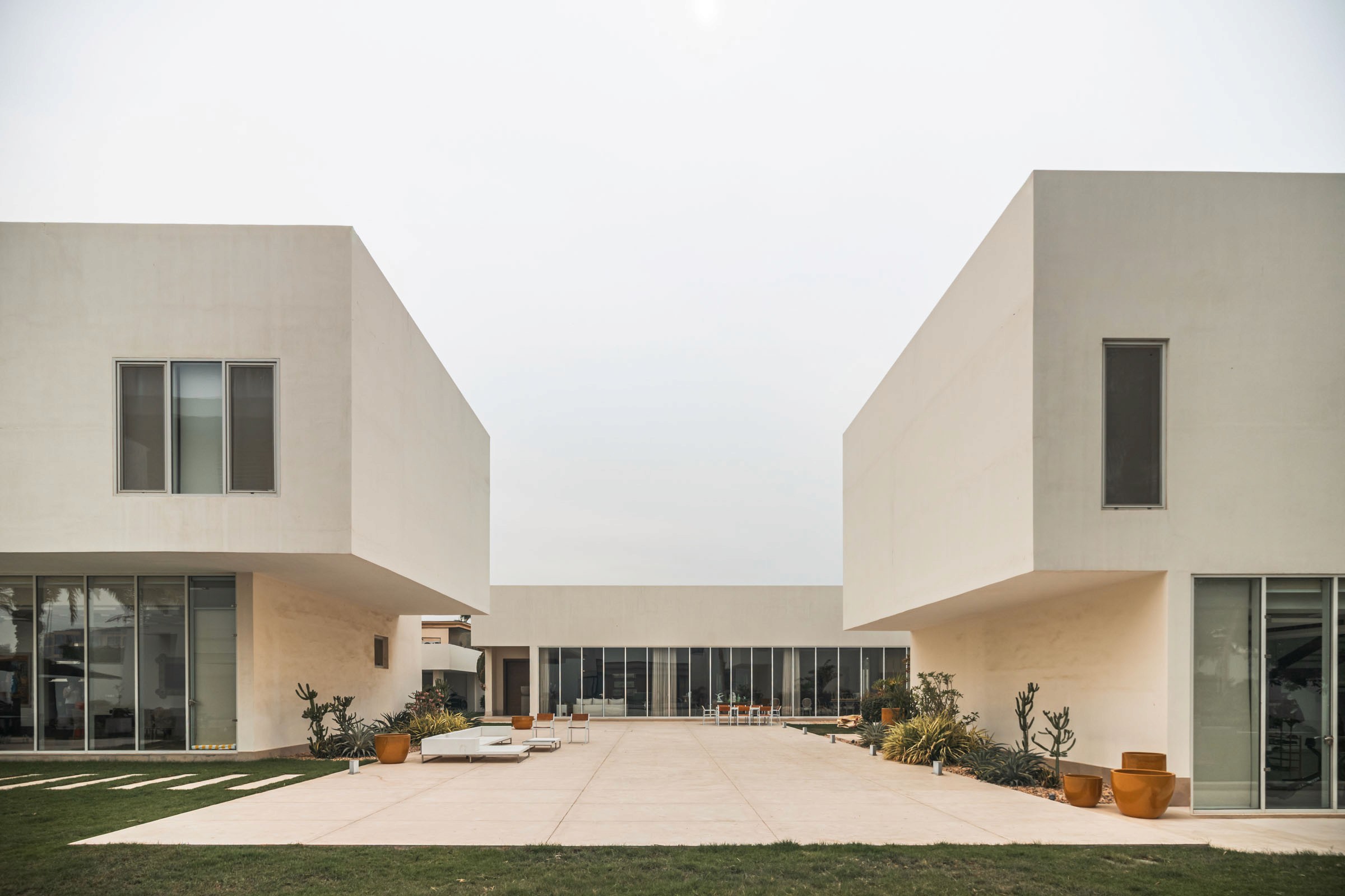 LS Villa is a private residence in Jeddah composed of three primary volumes: the main house, a guest house, and a children’s house. The exterior presents a minimalistic composition of cubic forms, with plastered walls and generous ground-floor glazing, establishing a clean, restrained architectural language. This simplicity forms a backdrop to the interiors, where contemporary design introduces warmth, colour, and texture, immediately creating a layered and engaging spatial experience.