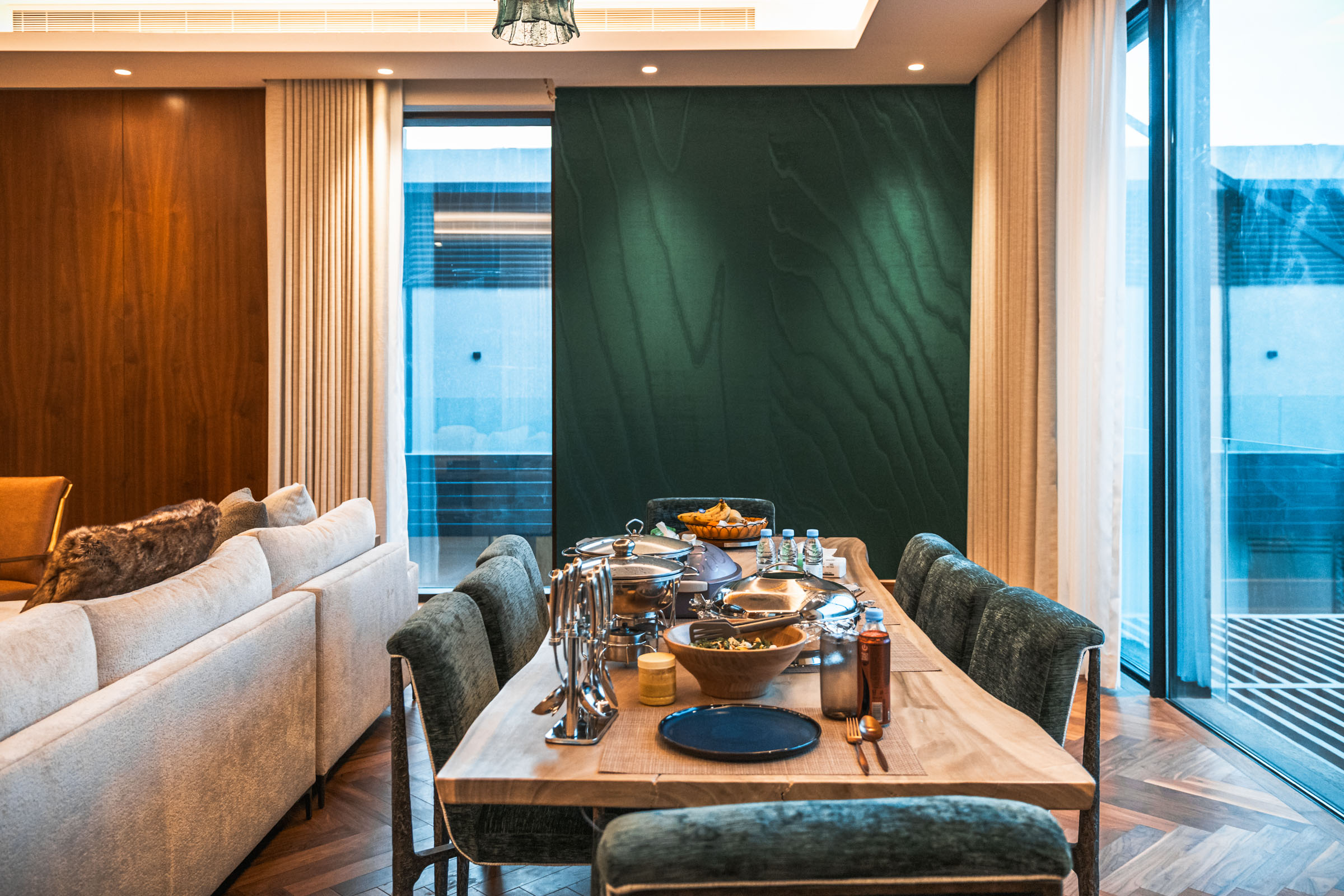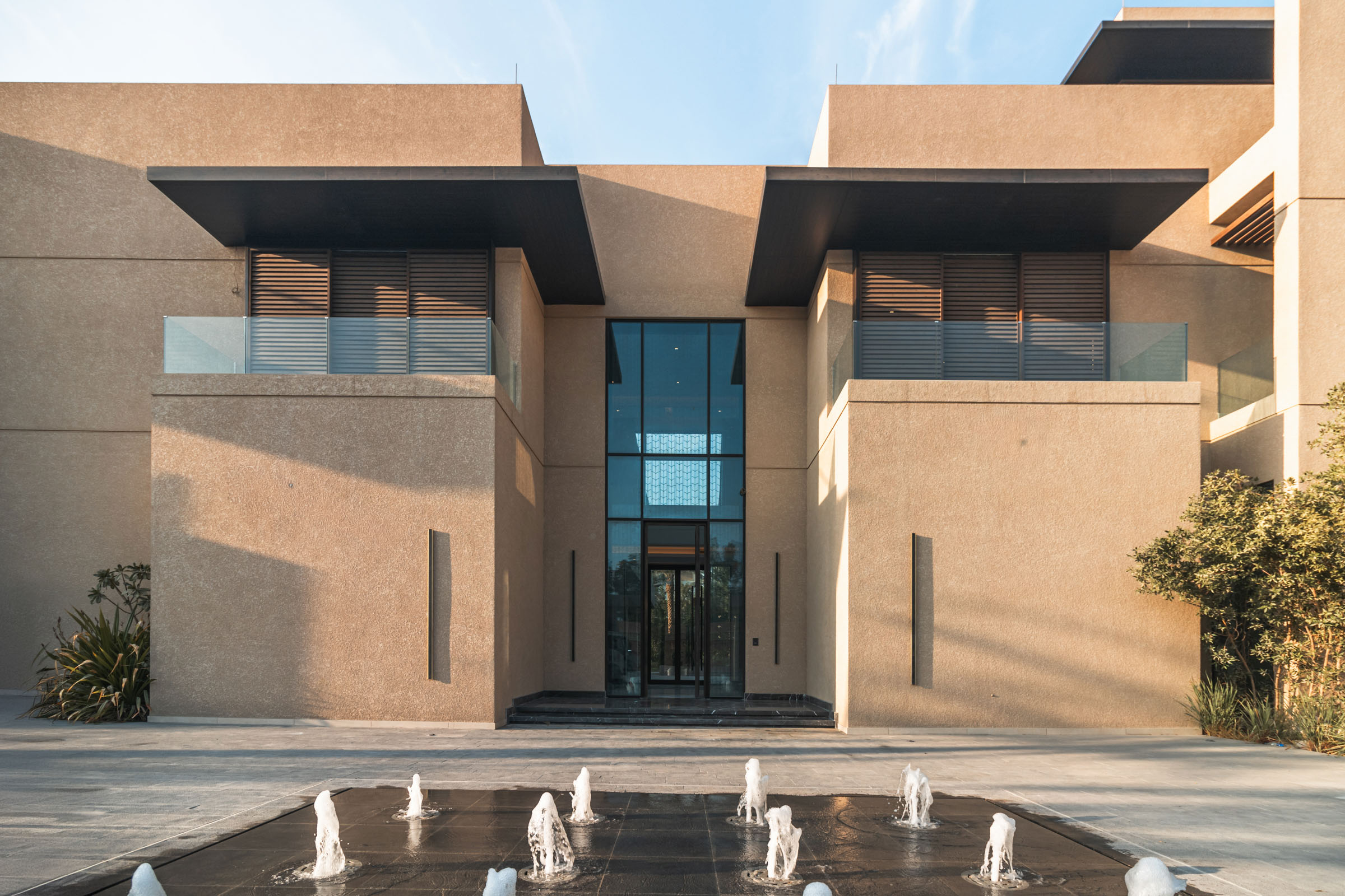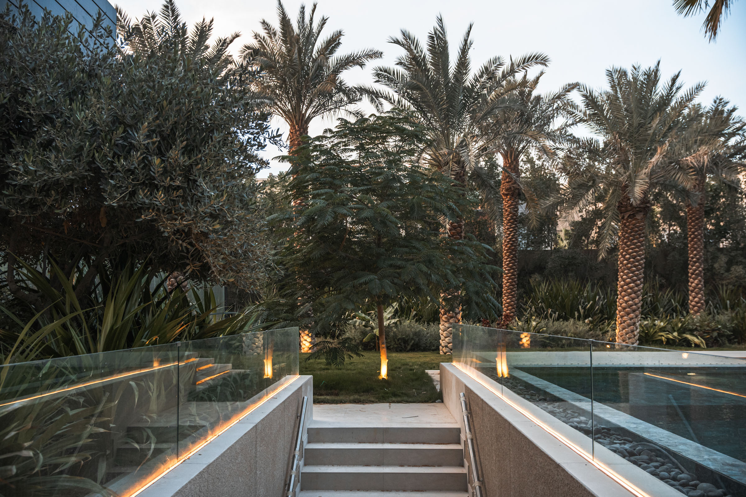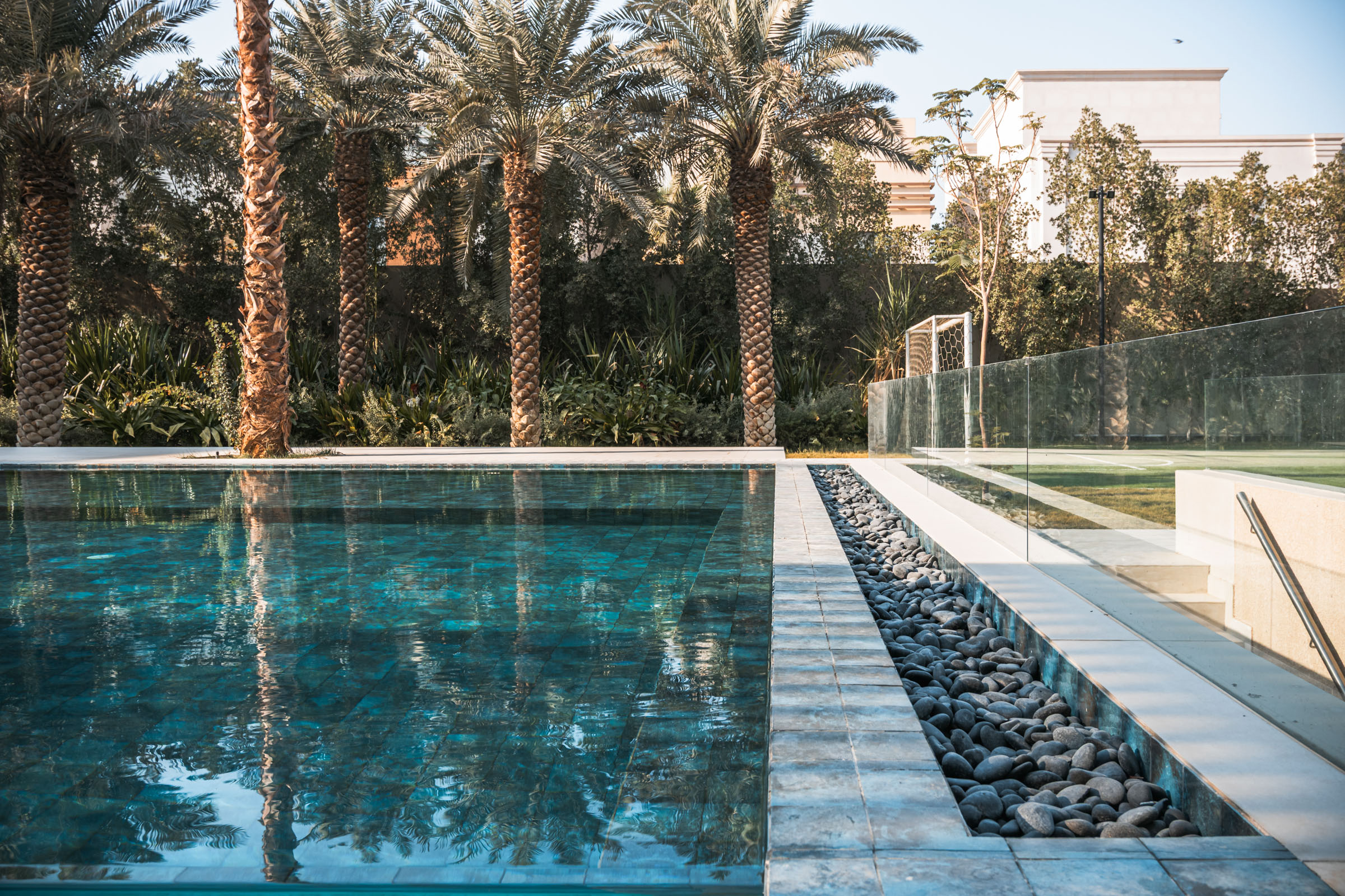 YA Villa is a 2,500 m² private residence in Riyadh, organised around a central swimming pool that acts as the spatial and visual core of the house. The primary living spaces are oriented inward, with views and movement consistently drawn towards this central outdoor element.